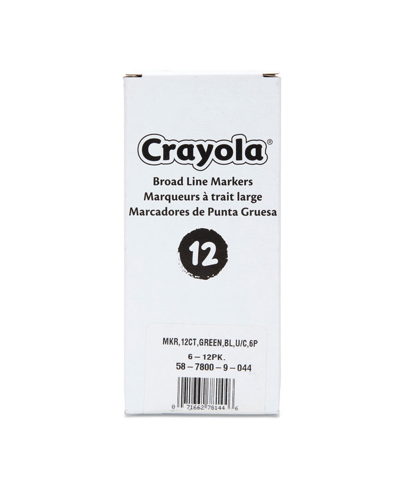 Order your favorite Crayola Marker color in bulk! Conveniently packaged in a reusable tuck box, each set contains 12 of the same color. With its conical tip, the Crayola Broad Line Marker is a versatile drawing tool. Perfect for coloring in large areas, these markers are also great for drawing thin lines or dots. Kids can even create a ribbon effect with lines that taper from thick to thin. Broad line markers lay down plenty of color and won't smudge or bleed through paper. Great for classrooms, art studios, and more!