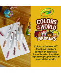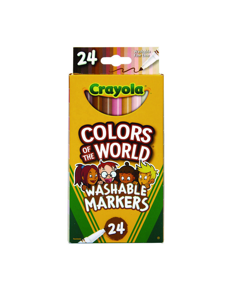 Crayola Colors of the World Fine Line Markers contain 24 specially formulated, washable colors that represent people from all around the world. Now it's even easier for kids to color themselves, their families and friends from all over the globe! Colors of the World fall into three main shades: Almond, Golden and Rose—and all the darker or lighter shades in between—making it easy for kids everywhere to see themselves in their art! Crayola Fine Line Markers are precise drawing tools. Ideal for coloring in small areas, these markers are also great for writing or drawing thin lines or dots. These markers lay down plenty of vibrant color and won't smudge or bleed through paper.