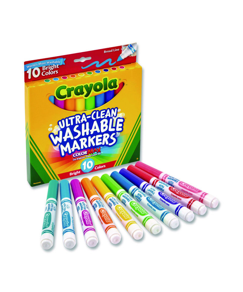 Keep color where it belongs with Crayola® Ultra-Clean Washable Markers, the perfect choice for worry-free creativity. Featuring vibrant Color Max Ink technology, these markers deliver bold, long-lasting color without bleeding through the page, ensuring clean and beautiful results every time. Designed with parents and teachers in mind, the ultra-washable formula easily rinses off skin, walls and most washable clothing, making cleanup a breeze. Ideal for classrooms, art projects and home use, these markers provide bright, vivid colors that inspire creativity while keeping messes under control. Let kids explore their artistic side confidently with these reliable, easy-to-clean markers.