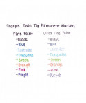 With two tips in one, these markers let you express yourself any way you want. Bold to the max and permanent to the core, Sharpie® permanent markers inspire you to transform ordinary surfaces into passionately creative statements. Made to write practically everywhere, vivid Sharpie® markers eliminate dull and boring. Sharpie® has iconic ink that dries quickly and resists both water and fading. While pale imitations wither away, Sharpie® markers make creations that endure. Featuring both a bold fine point and a precise ultra-fine tip, Sharpie® Super Twin-Tip Permanent Markers ignite courageous self-expression.