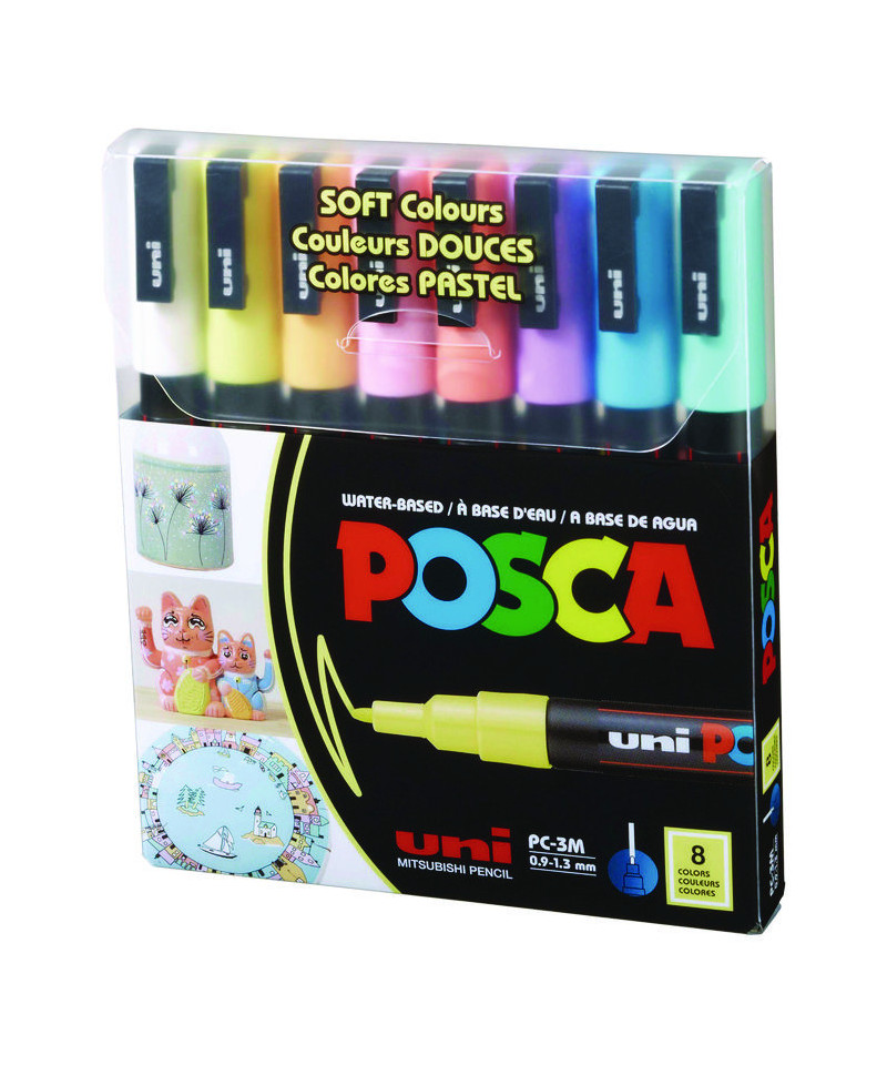POSCA™ Water-Based Paint Markers can be used on almost any surface you can dream up: paper, glass, cardboard, wood, porcelain, metal, textiles, ceramics, plastics and so much more. Their felt tips are also versatile, allowing you to produce neat and precise lines when outlining and bold lines when filling in spaces. Water-based, alcohol- and solvent-free, opaque paint is blendable, covers surfaces well, dries quickly and can be layered once dry. Ideal for beginners and professionals alike, these markers are a fluid and fun choice for arts and crafts projects, retail window signage, automobile windshields as well as interior and exterior decor projects. As an added benefit, their tips can be rinsed with water to keep them intact, allowing you to blend without fear of ruining the color of any given marker. Non-toxic, light-fast and waterproof paint can be scraped off most nonporous surfaces, such as glass, while remaining permanent on porous surfaces, such as paper.
