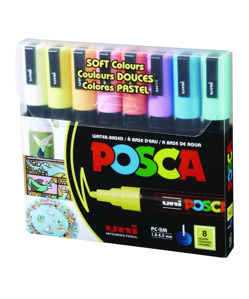 POSCA™ Water-Based Paint Markers can be used on almost any surface you can dream up: paper, glass, cardboard, wood, porcelain, metal, textiles, ceramics, plastics and so much more. Their felt tips are also versatile, allowing you to produce neat and precise lines when outlining and bold lines when filling in spaces. Water-based, alcohol- and solvent-free, opaque paint is blendable, covers surfaces well, dries quickly and can be layered once dry. Ideal for beginners and professionals alike, these markers are a fluid and fun choice for arts and crafts projects, retail window signage, automobile windshields as well as interior and exterior decor projects. As an added benefit, their tips can be rinsed with water to keep them intact, allowing you to blend without fear of ruining the color of any given marker. Non-toxic, light-fast and waterproof paint can be scraped off most nonporous surfaces, such as glass, while remaining permanent on porous surfaces, such as paper.