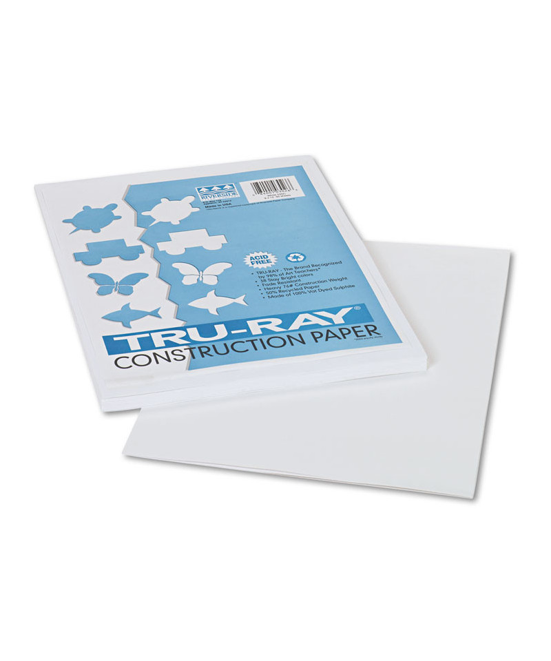Tru-Ray Construction Paper, 76 lb Text Weight, 9 x 12, White, 50/Pack