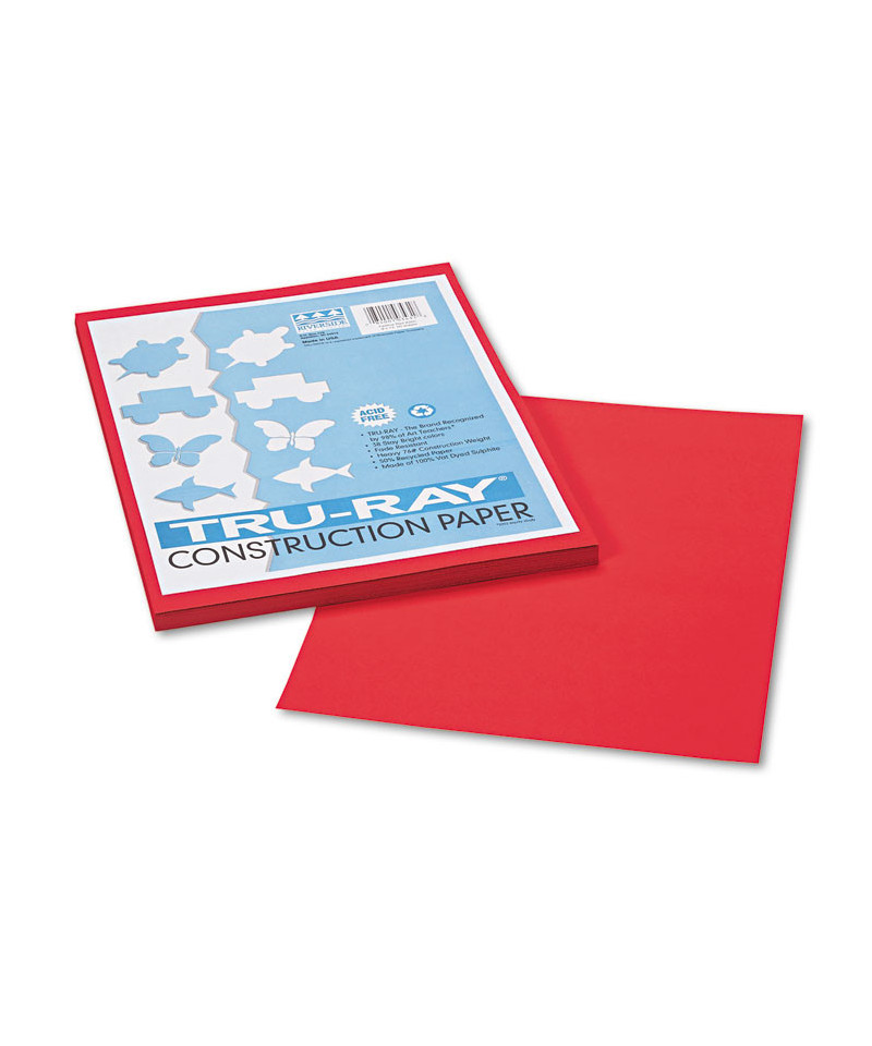Tru-Ray Construction Paper, 76 lb Text Weight, 9 x 12, Festive Red, 50/Pack