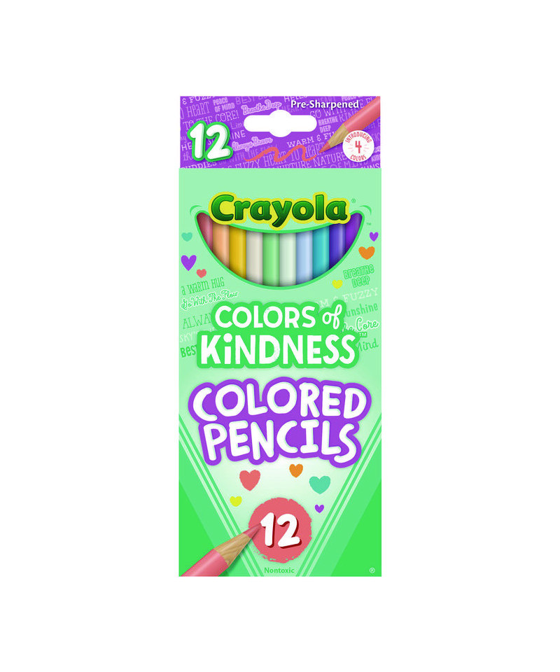 Spread the love with a pack of Crayola Colors of Kindness Colored Pencils! Packaged in an adorable flip-top box, this colored pencil set includes 12 Crayola Colored Pencils with special-edition color names. It's the perfect box of coloring supplies for artists who like to live life on the sunny side! Perfect for coloring books, crafting, and school projects, these art supplies are extra colorful and made to last. Safe and nontoxic art supplies for a kids age 5 and up.