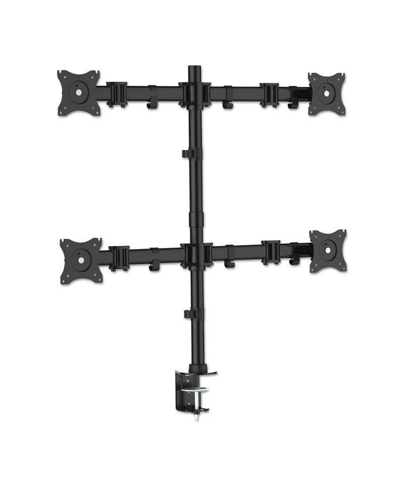Articulating Quad Monitor Arms, For 13" to 27" Monitors, 360 deg Rotation, 45 deg Tilt, 180 deg Pan, Black, Supports 18 lb