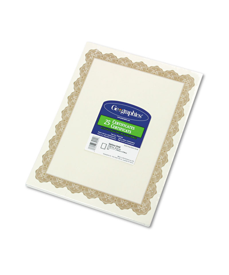 Parchment Paper Certificates, 8.5 x 11, Optima Gold with White Border, 25/Pack