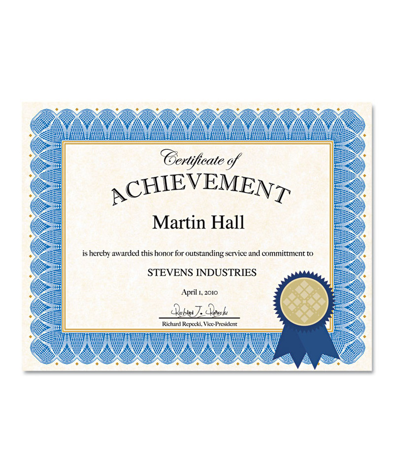Includes everything you need to create up to 25 finished award certificates, complete with foil seals and blue ribbons. Easy to format and print using any inkjet or laser printer.