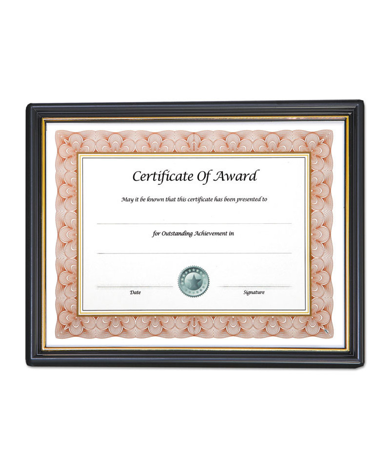 Economy award frame where recognition is important. Includes two 8 1/2" x 11 pre-printed fill in the blank certificates recognizing achievement and appreciation—or create, print and insert your document. Lightweight shallow plastic frame provides a low-cost framing option where recognition is the reward.