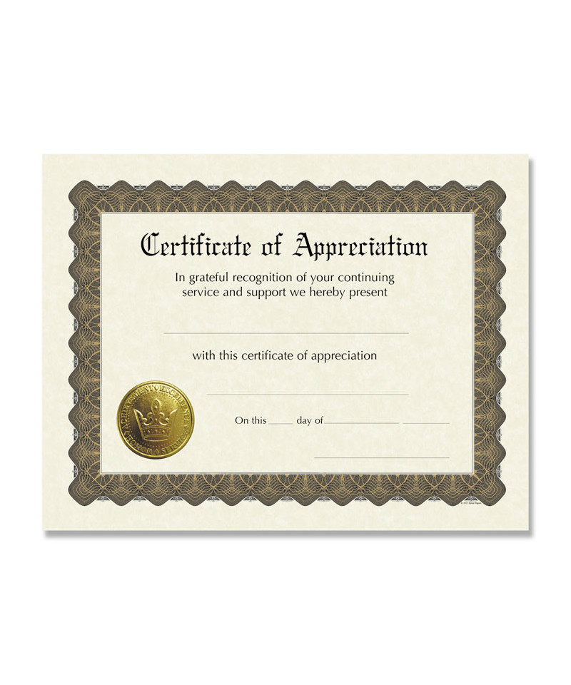 Ready-to-Use Certificates, Appreciation, 11 x 8.5, Ivory/Brown/Gold Colors with Brown Border, 6/Pack