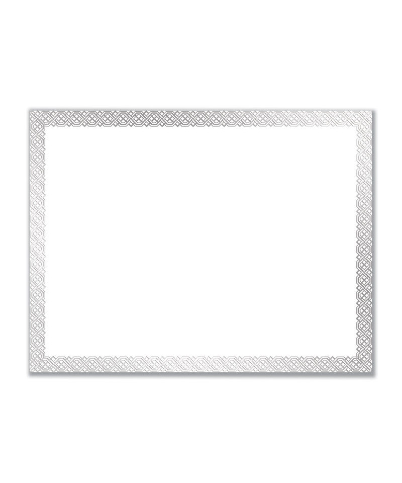 Foil Border Certificates, 8.5 x 11, White/Silver with Braided Silver Border,15/Pack