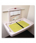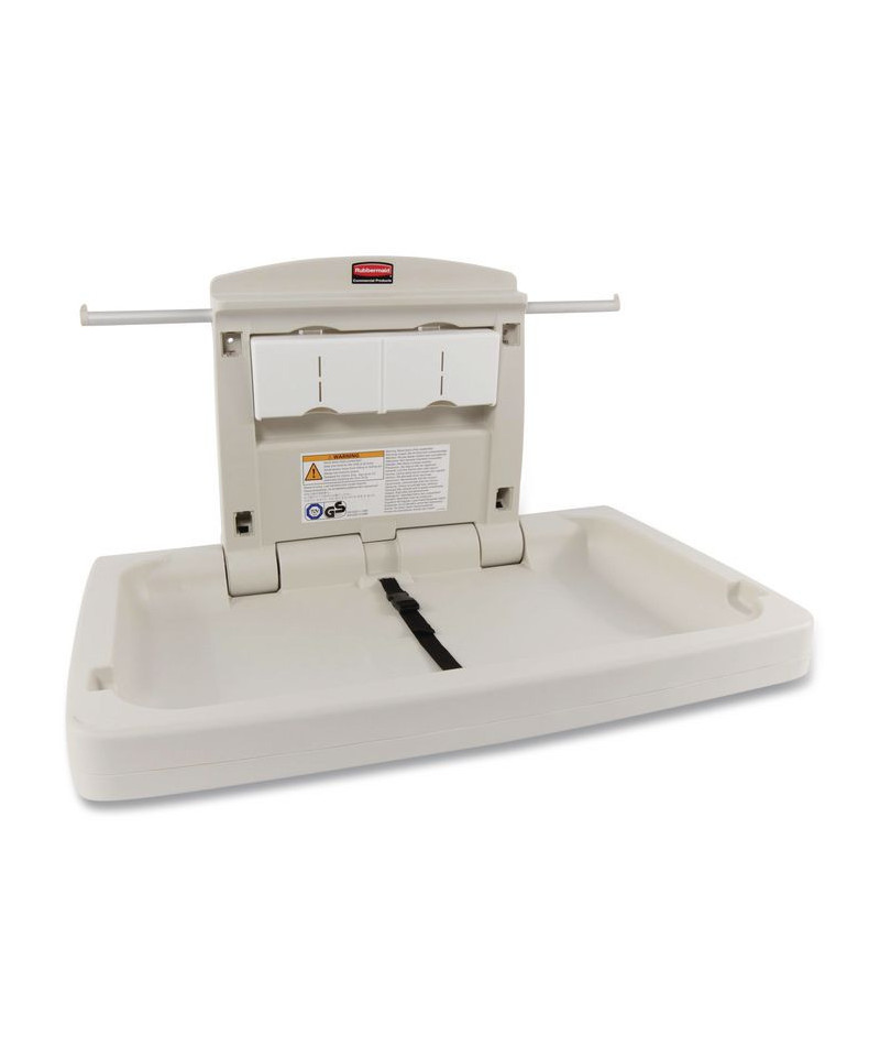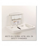 The Rubbermaid Commercial Horizontal Baby Changing Station is designed for commercial environments. Built from high-density polypropylene, this baby changing pad table does not absorb moisture. This baby station meets all global EN, FDA, ADA, and ASTM safety standards. The sturdy station features an accessory shelf to keep items away from baby plus easy reach hooks. The smooth surface makes this changing table easy to clean. Constructed from study materials for durability and antimicrobial product protection.