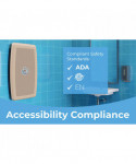 Front panel and flange are one-piece deep drawn stainless steel which eliminates seams, sharp edges and weld lines. Baby changing surface includes Microban antimicrobial protection which inhibits growth of bacteria on the product reassuring patrons of a hygienic surface. Dual-cavity liner dispenser has integral spring tab that dispenses one liner at a time. Integral frame offers exceptional bed stability and minimal deflection. Equipped with tumbler lock, keyed alike. Includes stainless steel external bag hook.