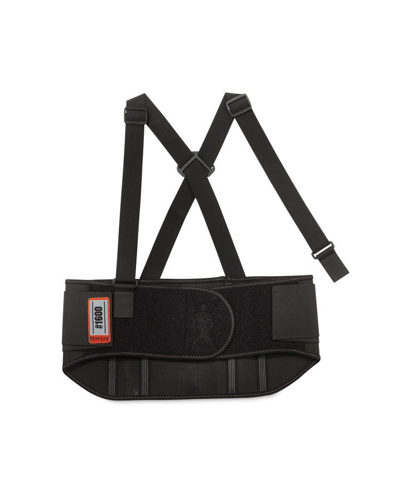 The ProFlex 1600 Standard Elastic Back Support Brace is designed to remind workers of proper lifting techniques while also enhancing the body's intra-abdominal pressure, moving the stress away from the spine for back-pain relief. Premium, all-elastic body with a 9 wide belt provides extra-firm support, and a contoured, high-cut front panel delivers a more comfortable fit. Before lifting heavy objects, simply tighten the support belt to enhance the body's intra-abdominal pressure; and after lifting, just loosen the belt to achieve a wider range of motion. Secure-fit, interior rubber-track webbing prevents the belt from riding up when bending or lifting. Innovative Power Panel Positioners keep the tension bands close-to-hand, making it easy to get the desired level of tension. Non-conductive polypropylene stays help ensure long-lasting integrity. Adjustable, detachable suspenders allow the wearer to tailor the shoulder-fit to his or her unique needs. For best results, the support should fit snugly around the wearer's hips, with the front of the support two-fingers below the wearer's navel. When worn correctly, workers can easily maintain the proper posture for lifting, while achieving the extra support required to safely complete the task. Easy-to-use hook-and-loop closure keeps the belt securely fastened while in use. Brace can be worn over or underneath clothing. Machine washable—machine-wash cold and air dry.