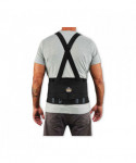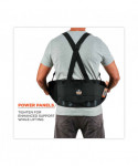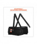 The ProFlex 1400UN Universal Size Back Support Brace provides lower-back and abdominal support for lifting heavy objects, while accommodating nearly any waist size. Universal-fit design accommodates waist sizes ranging from 25 to 58. Non-conductive polypropylene stays and comfortable-stretch 280D spandex body ensure long-lasting integrity. Before lifting heavy objects, simply tighten the support belt to enhance the body's intra-abdominal pressure; and after lifting, just loosen the belt to achieve a wider range of motion. Secure-fit, interior rubber-track webbing prevents the belt from riding up when bending or lifting. Innovative Power Panel Positioners keep the tension bands close-to-hand, making it easy to get the desired level of tension. Adjustable, detachable suspenders allow the wearer to tailor the shoulder-fit to his or her unique needs. For best results, the support should fit snugly around the wearer's hips, with the front of the support two-fingers below the wearer's navel. When worn correctly, workers can easily maintain the proper posture for lifting, while achieving the extra support required to safely complete the task. Easy-to-use hook-and-loop closure keeps the belt securely fastened while in use. Brace can be worn over or underneath clothing. Machine washable—machine-wash cold and air dry.