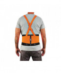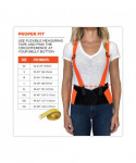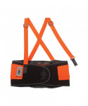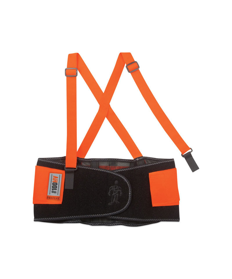 The ProFlex 100HV Economy Hi-Vis Spandex Back Support Brace is designed to remind workers of proper lifting techniques, while enhancing the body's intra-abdominal pressure to move stress away from the spine to minimize the potential for back-pain. Hi-vis orange panels help keep workers conspicuously visible. Durable, yet economic 280D spandex body is as comfortable as it is supportive. Ultra-flexible, stretchable bias binding features zig-zag stitching for enhanced strength. Before lifting heavy objects, simply tighten the support belt to enhance the body's intra-abdominal pressure; and after lifting, just loosen the belt to achieve a wider range of motion. Innovative Power Panel Positioners keep the tension bands close-to-hand, making it easy to get the desired level of tension. Secure-fit, interior rubber-track webbing prevents the belt from riding up when bending or lifting. Non-conductive polypropylene stays help ensure long-lasting integrity. Adjustable, removable shoulder straps keep the belt on standby until the next lift while allowing the wearer to tailor the shoulder-fit to his or her unique needs. For best results, the support should fit snugly around the wearer's hips, with the front of the support two-fingers below the wearer's navel. When worn correctly, workers can easily maintain the proper posture for lifting, while achieving the extra support required to safely complete the task. Easy-to-use hook-and-loop closure keeps the belt securely fastened while in use. Brace can be worn over or underneath clothing. Machine washable—machine-wash cold and air dry.