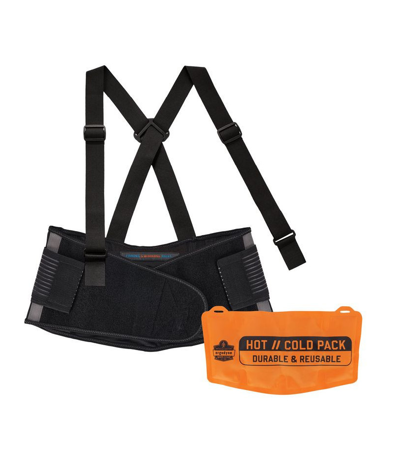 The ProFlex 1675 Back Support Brace not only promotes proper lifting techniques but also offers versatile hot/cold therapy. ProFlex back supports are designed to remind workers of proper lifting techniques while also enhancing the body's intra-abdominal pressure, moving the stress away from the spine for back pain relief. Featuring 480D spandex body material with a V-shaped design, this back support brace provides a firm level of support and also features mesh material on the backside for increased airflow. Rubber track webbing stays are sewn onto the interior to help keep support in position and prevent it from riding up. Included with each back support is a reusable cooling/warming pack for soothing pain relief. The pack can be activated in the fridge or freezer for cold therapy or warmed up in the microwave or boiled on stovetop for hot therapy. Cold therapy targets inflammation, swelling and muscle spasms, while heat therapy targets muscle pain and tension.