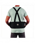 The ProFlex 1650 Economy Elastic Back Support Brace is designed to remind workers of proper lifting techniques while also enhancing the body's intra-abdominal pressure, moving the stress away from the spine for back-pain relief. Flexible, breathable all-elastic body with a 7.5" wide belt provides extra-firm support. Before lifting heavy objects, simply tighten the support belt to enhance the body's intra-abdominal pressure; and after lifting, just loosen the belt to achieve a wider range of motion. Secure-fit, interior rubber-track webbing prevents the belt from riding up when bending or lifting. Innovative Power Panel Positioners keep the tension bands close-to-hand, making it easy to get the desired level of tension. Non-conductive polypropylene stays help ensure long-lasting integrity. Adjustable, detachable suspenders allow the wearer to tailor the shoulder-fit to his or her unique needs. For best results, the support should fit snugly around the wearer's hips, with the front of the support two-fingers below the wearer's navel. When worn correctly, workers can easily maintain the proper posture for lifting, while achieving the extra support required to safely complete the task. Easy-wear, 5" wide fastener strap with hook and loop closure keeps the belt securely fastened while in use. Brace can be worn over or underneath clothing. Machine washable—machine-wash cold and air dry.