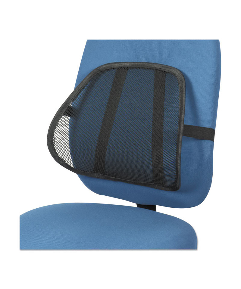 Ergonomically designed stretched mesh backrest supports the lower back. Contoured shape and curves to keep the back in alignment. Breathable mesh fabric keeps the back cool and supported. Adjustable elastic straps secures backrest in place. Great with office chairs, car seats, or in the home.