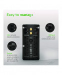 Provide backup power to modems, routers and other devices when electricity fails with this UPS compact tower. Dataline surge protection ports shield electronics from power spikes, and the energy management cuts power to peripherals if the master device shuts down. The LCD screen on this APC® Back-UPS Pro tower displays the estimated run time for connected devices.