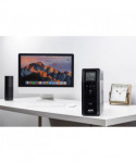 Premium battery backup and surge protection ensures that your valuable electronics remain safe from dangerous power disturbances. Automatic Voltage Regulation (AVR) maintains healthy voltage conditions without using battery power, saving backup runtime for outages when you need it. Active Power Factor Corrected device compatibility keeps PFC devices from unexpectedly shutting down when switching to backup power during an outage. Network dataline surge protection prevents dangerous surges traveling along datalines from damaging your equipment. Hot-swappable, user-replaceable batteries allow you to easily and quickly exchange them without shutting down, without having to interrupt protection. USB ports deliver convenient mobile-device charging. LCD interface displays easy-to-note information on utility and UPS status. Audible alarms notify you of changing utility power and UPS conditions. Select wide-spaced outlets permit the use of transformer-based plugs.