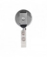 Compact, round badge reel extends for easy swiping and scanning of ID card and retracts automatically. Sliding belt clip for easy attach to your person.
