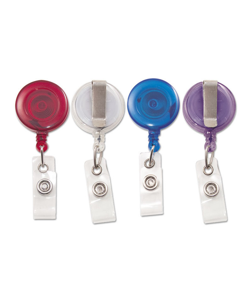 Translucent Retractable ID Card Reel, 30" Extension, Assorted Colors, 4/Pack