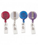 Distinct translucent design makes this ID card reel stand out. Connects easily to any ID card or name badge. Retractable cord allows convenient scanning/swiping of cards. Also includes a handy belt/pocket clip and clear badge holder.