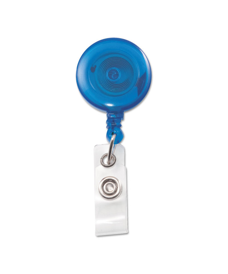 Translucent Retractable ID Card Reel, 30" Extension, Blue, 12/Pack