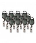 Carabiner-style clip offers a more secure connection and frees you from wearing an ID badge. Carabiner can hook onto belt loops, briefcases and purse straps. Retractable cord allows convenient scanning/swiping.