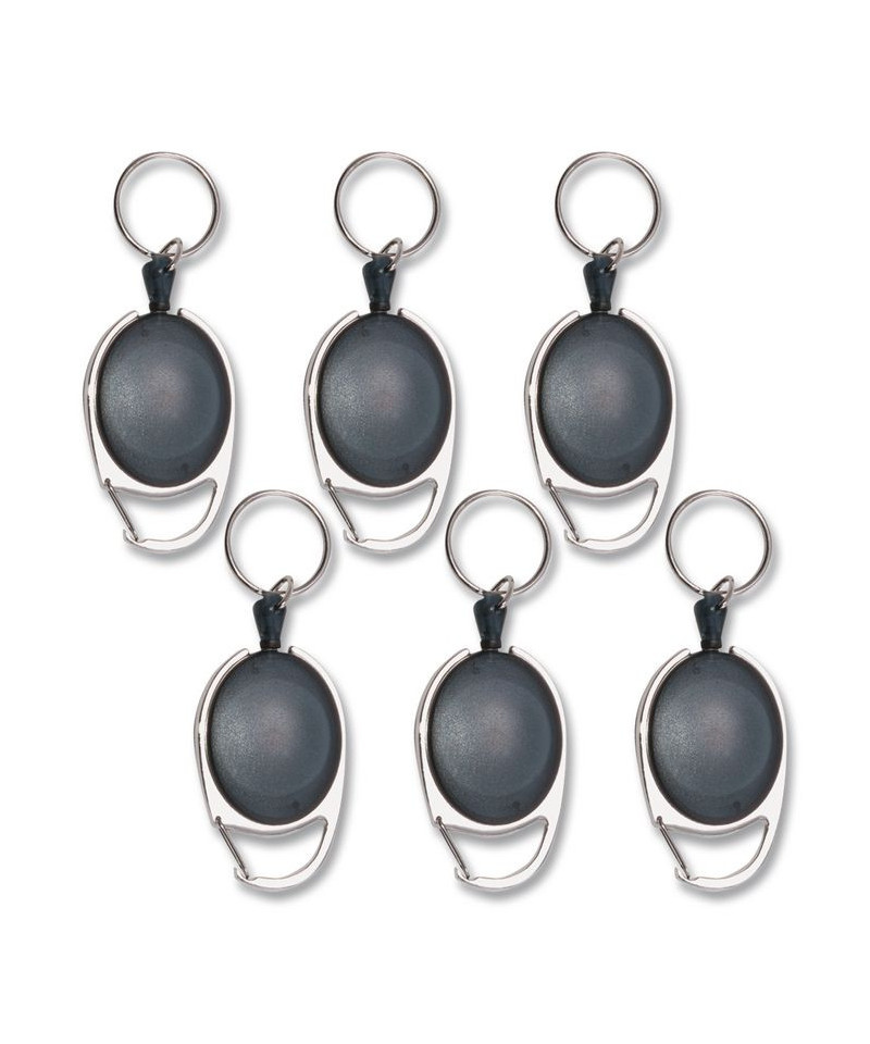 Carabiner-Style Retractable ID Card Reel, 30" Extension, Smoke, 6/Pack