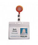 Retractable cord badge reel allows for convenient swiping/scanning extending to 24". Badge reel has a clip on the back to fasten to belts, pockets and pants. Provides instant access to badges, cards and keys. Plastic badge holder strap attaches to badges, key rings and badge holders.