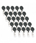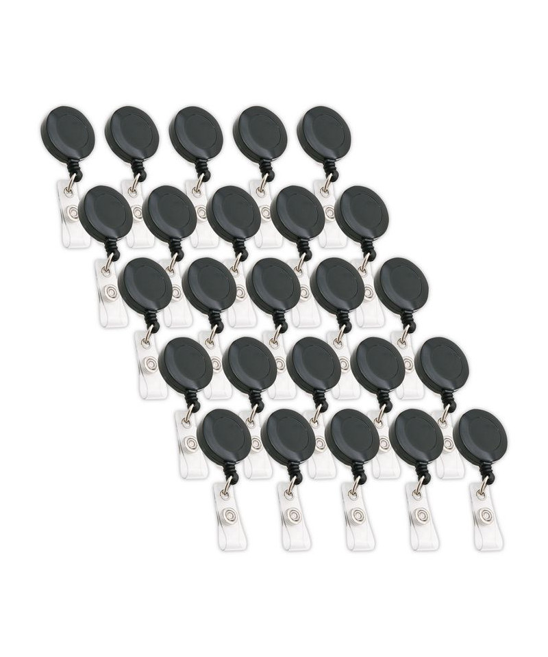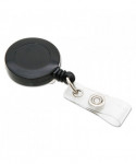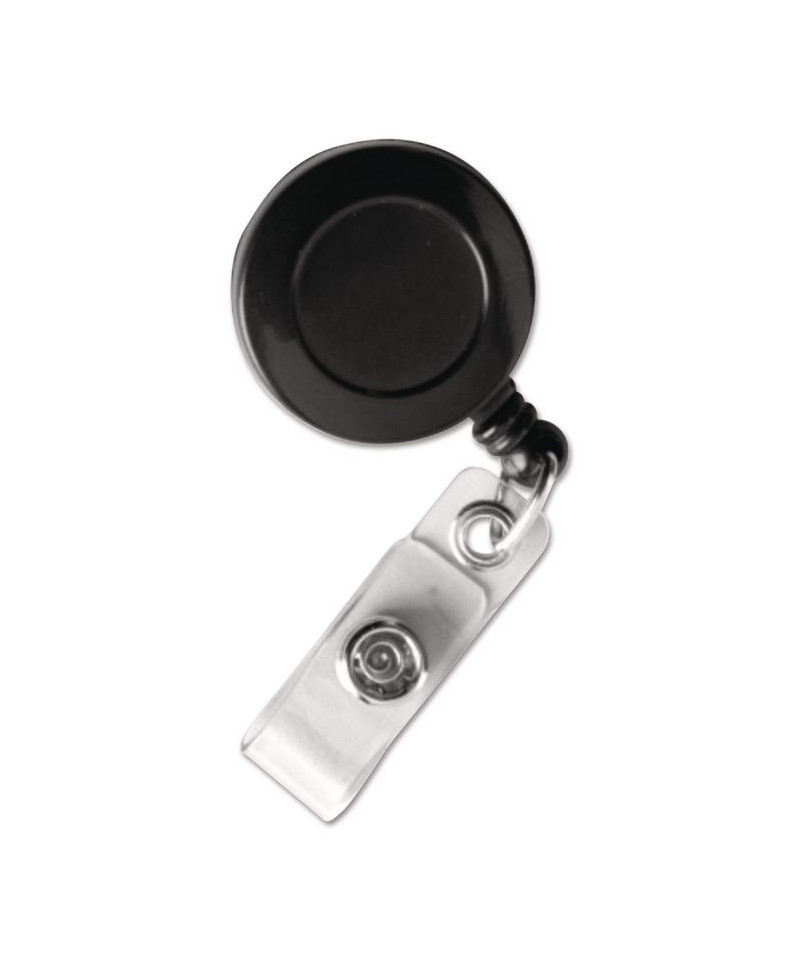 These compact, round, plastic card reels connects easily to your ID or security badge holder for convenient displaying. Slide-style clip attaches to a belt, pocket or purse; ensures that your ID card stays securely with you at all times. Extends 30 inches and retracts automatically. Provides easy access--reel it out to show your badge to security or for use at the access panel.