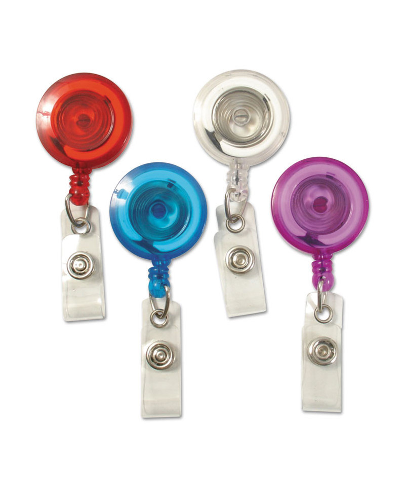 These compact, round, plastic card reels connects easily to your ID or security badge holder for convenient displaying. Slide-style clip attaches to a belt, pocket or purse; ensures that your ID card stays securely with you at all times. Extends 30 inches and retracts automatically. Provides easy access--reel it out to show your badge to security or for use at the access panel.