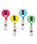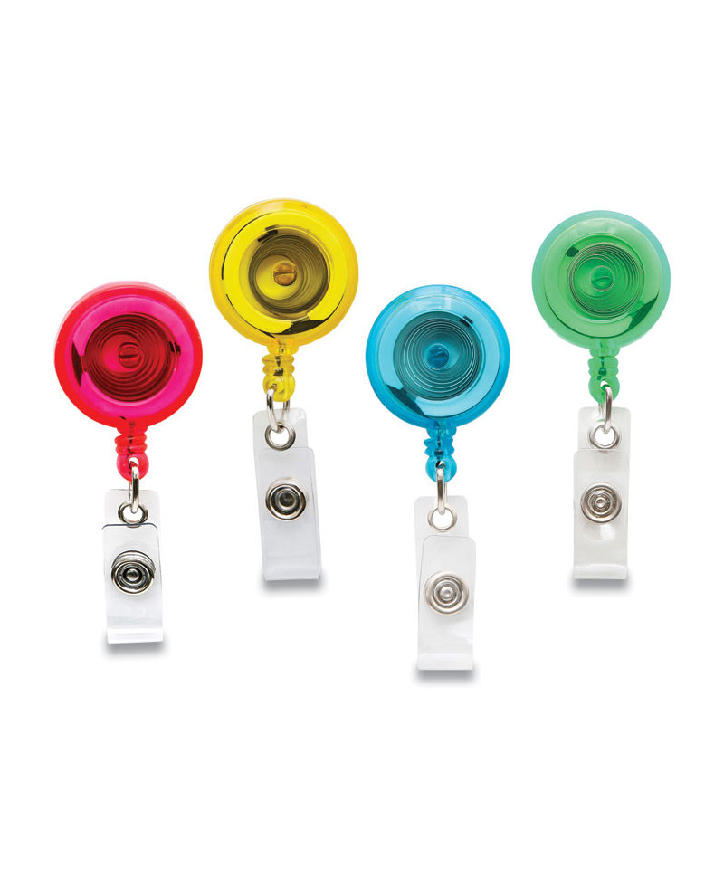 These compact, round, plastic card reels connects easily to your ID or security badge holder for convenient displaying. Slide-style clip attaches to a belt, pocket or purse; ensures that your ID card stays securely with you at all times. Extends 30 inches and retracts automatically. Provides easy access--reel it out to show your badge to security or for use at the access panel.