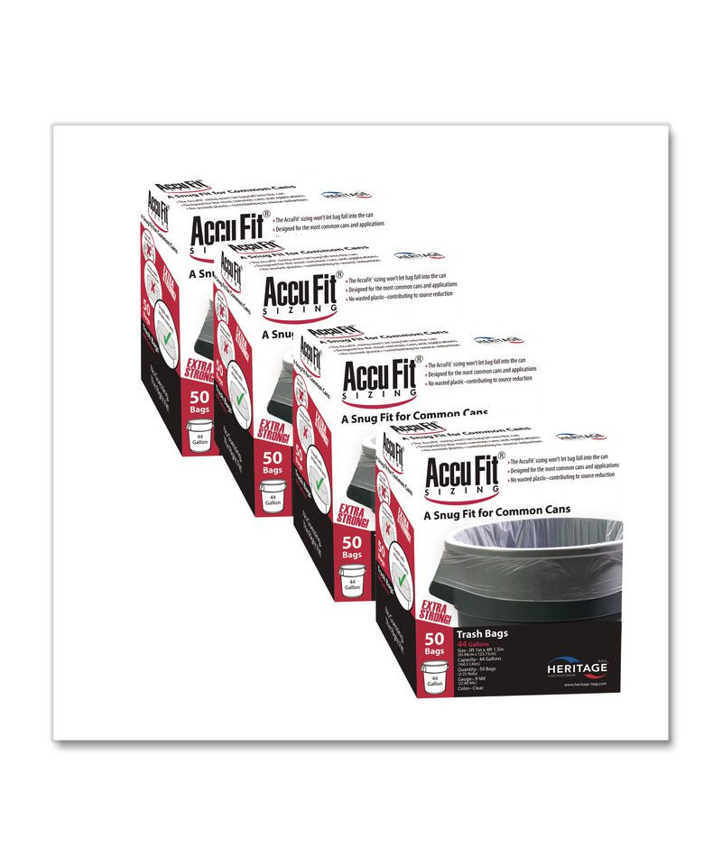 Linear Low Density Can Liners with AccuFit Sizing, 44 gal, 0.9 mil, 37" x 50", Clear, 50 Bags/Box, 4 Boxes/Carton