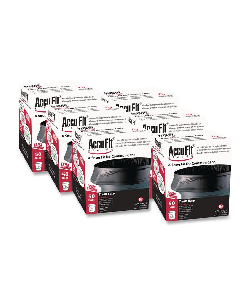 Stronger can liners are constructed of prime-quality resin. AccuFit® sizing ensures that bags won't fall into can. Designed for most common sizes and applications.
