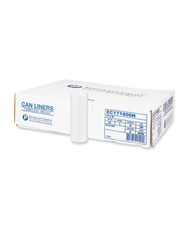 HDPE liners are an excellent choice for refuse-collection applications where there are no sharp edges. High-quality, virgin resin provides a higher-than-average tensile strength with an outstanding dart-impact rating. Strong, star-sealed bottoms ensure weight remains distributed evenly. Innovative "clamshell" box features E-Z liner-identification labeling.