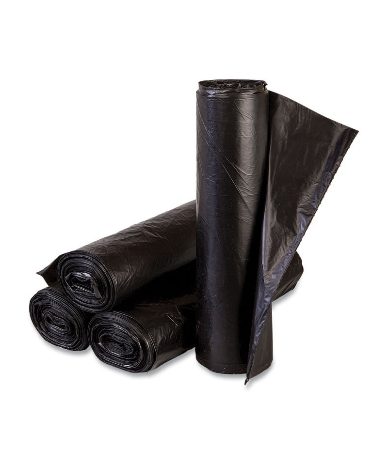 High-Density Commercial Can Liners, 10 gal, 6 mic, 24" x 24", Black, Perforated Roll, 50 Bags/Roll, 20 Rolls/Carton