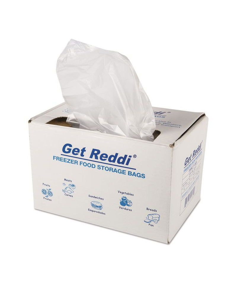 Get ready for the deep freeze, with Get Reddi® freezer food storage bags - ideal for use in freezers, coolers and warmers, transitioning easily from cold to heat. Freezer bags provide sanitary protection for food preparation and serving. Twist ties included for convenient closure. Bags with reinforced seals work to prevent leaks for secure storage. Sturdy clam shell dispenser boxes for easy, grab-and-go use.