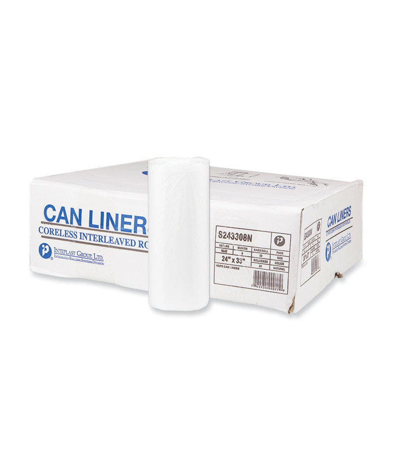High-Density Commercial Can Liners, 16 gal, 8 mic, 24" x 33", Natural, Interleaved Roll, 50 Bags/Roll, 20 Rolls/Carton