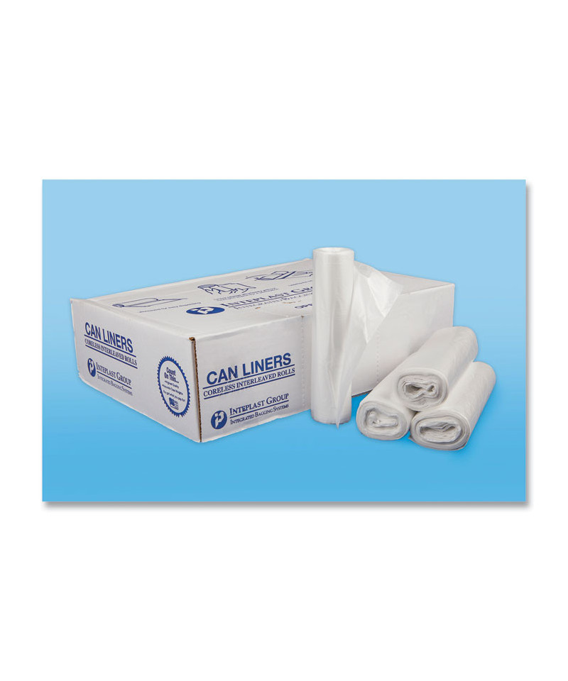 High-Density Commercial Can Liners, 30 gal, 13 mic, 30" x 37", Clear, Interleaved Roll, 25 Bags/Roll, 20 Rolls/Carton