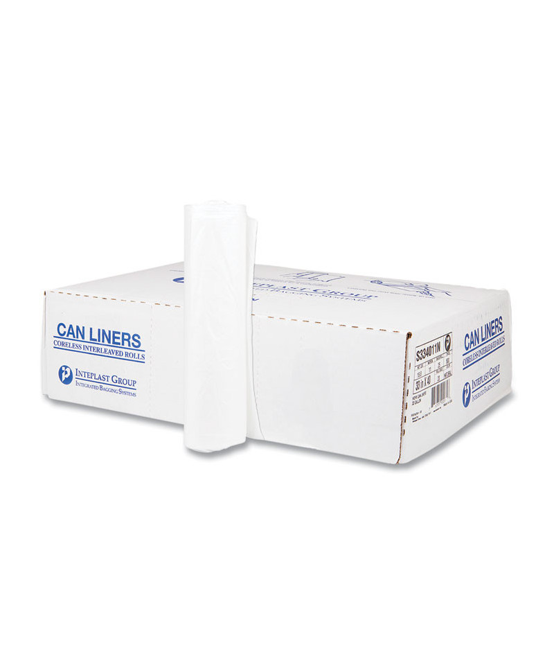 High-Density Commercial Can Liners, 33 gal, 11 mic, 33" x 40", Clear, Interleaved Roll, 25 Bags/Roll, 20 Rolls/Carton