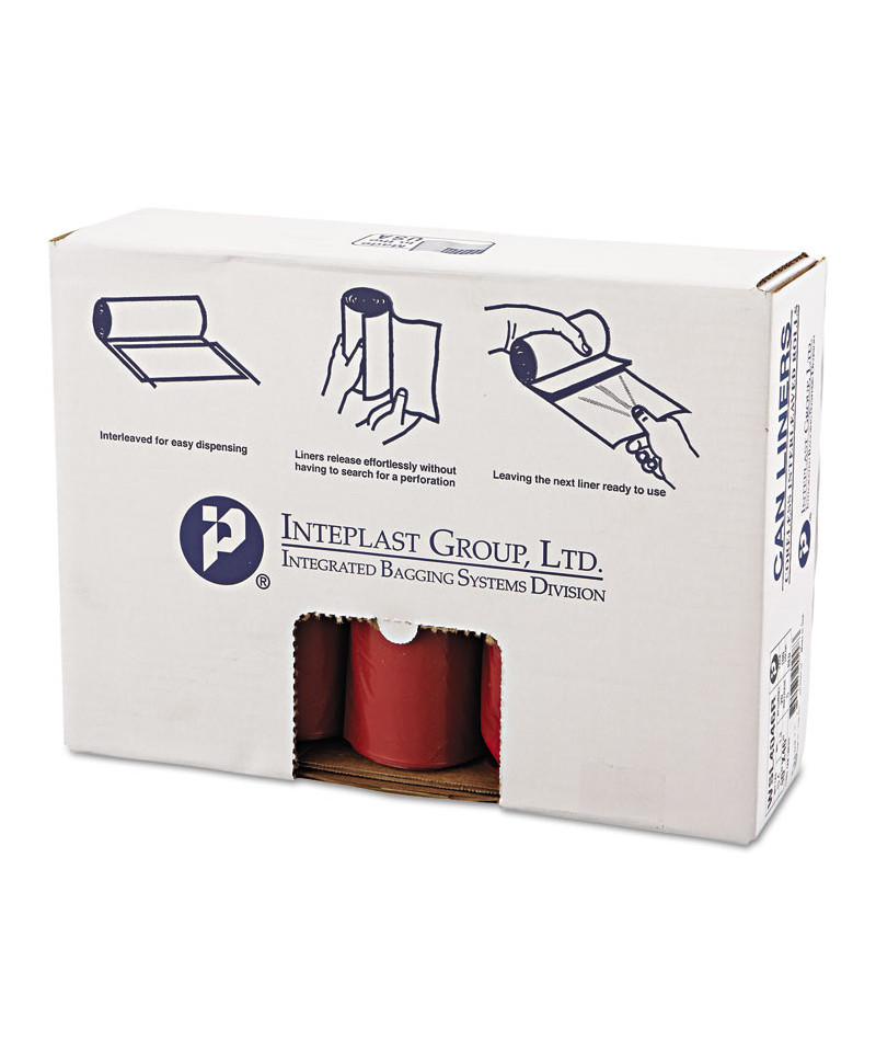 Low-Density Commercial Can Liners, Infectious Waste Biohazard, 45 gal, 1.3 mil, 40" x 46", Red, Interleaved, 20/RL, 5 RL/CT