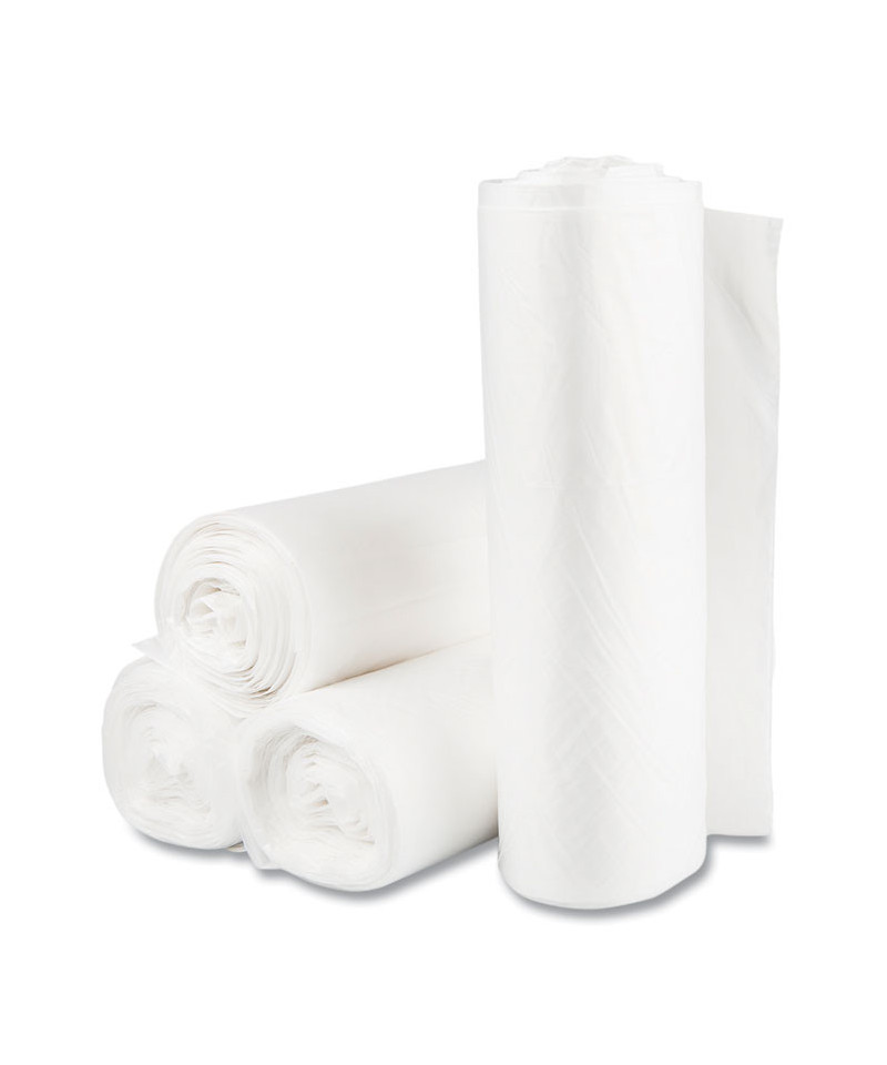 HDPE liners are an excellent choice for refuse-collection applications where there are no sharp edges. High-quality, virgin resin provides a higher-than-average tensile strength with an outstanding dart-impact rating. Strong, star-sealed bottoms ensure weight remains distributed evenly. Innovative "clamshell" box features E-Z liner-identification labeling.