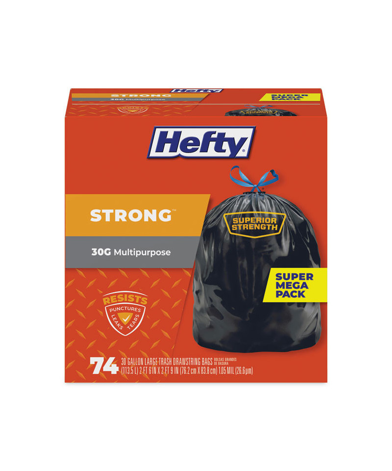 Featuring true multipurpose convenience at a great price, these trash bags are ideal for use as tall-kitchen can liners, garage can liners, general lawn care tasks and more. Superior strength with excellent puncture-, leak- and tear-resistance ensures messes stay in the bag, cleanly contained. Convenient, reliable drawstring closure makes these bags a cinch to close, while ensuring they're always easy to lift and carry.