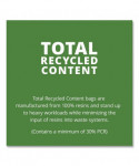 Recycled trash bags are multi-use and strong—puncture and tear resistant. Made from recycled materials. Stands up to heavy workloads while minimizing plastics in waste systems.