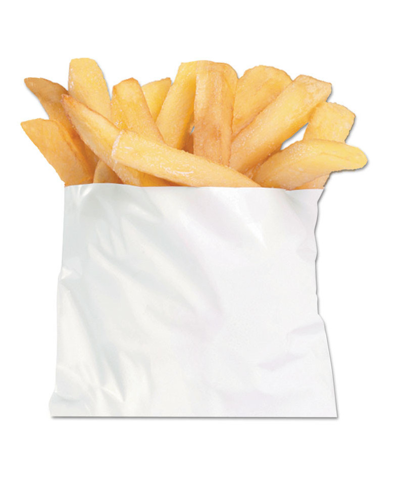Waxed paper bags provide excellent grease resistance. Undercut opening makes them easy-to-open and easy-to-load. Flat-storage design allows you to keep a stack where you need them most. Economical choice for fries and side orders.