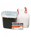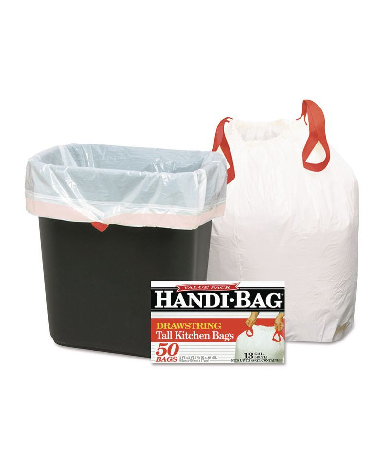 Drawstring closure on bags keeps everything clean and free from trash. Linear low density resin for greater stretch and puncture resistance. Comes in a low count convenience pack. Strong enough to hold all residential household and break room garbage.