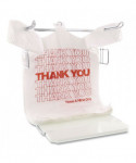 Preprinted "Thank You" shopping bags help you show appreciation while boosting your image. Strong, high-density plastic resists tearing and splitting. Convenient handles.